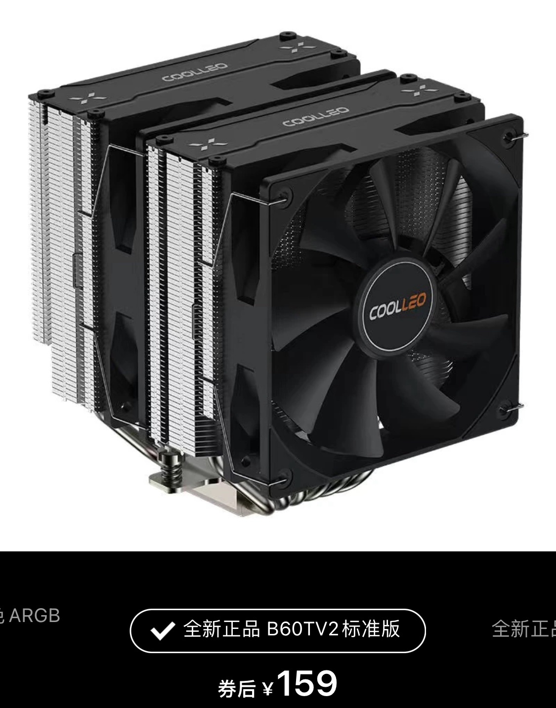 酷里奥b60tv2 159元 双12cm风扇双塔六热管镀镍底座 推荐使用cpu:14600kf/245k/5700x/7700/9700x