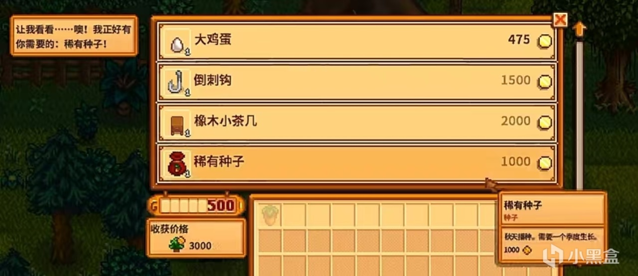 我們先要在旅行貨車處購買稀有種子,秋季播種24天成熟。