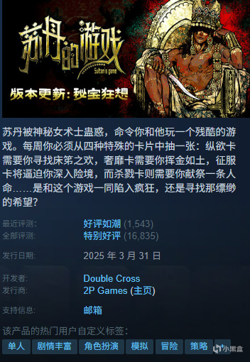 新史低,小黑盒買有十元優惠卷,雖然不是T1水準的3a大作,但是作爲日常ED的消遣品毫無疑問是頂尖的。