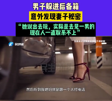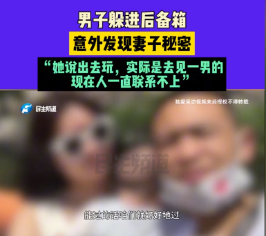 妻子獨自出遊丈夫藏後備箱發現祕密,怎麼不能再多忍一會啊!