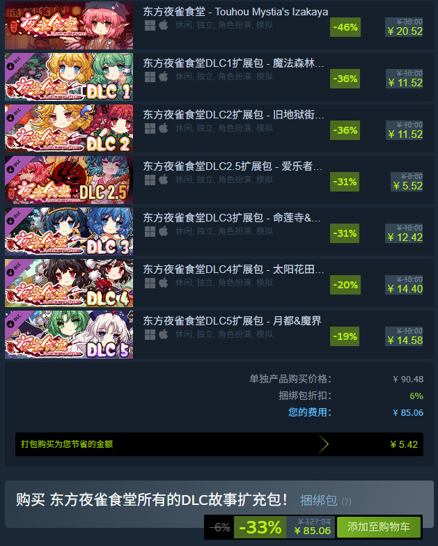東方夜雀食堂所有的DLC故事擴充包!
