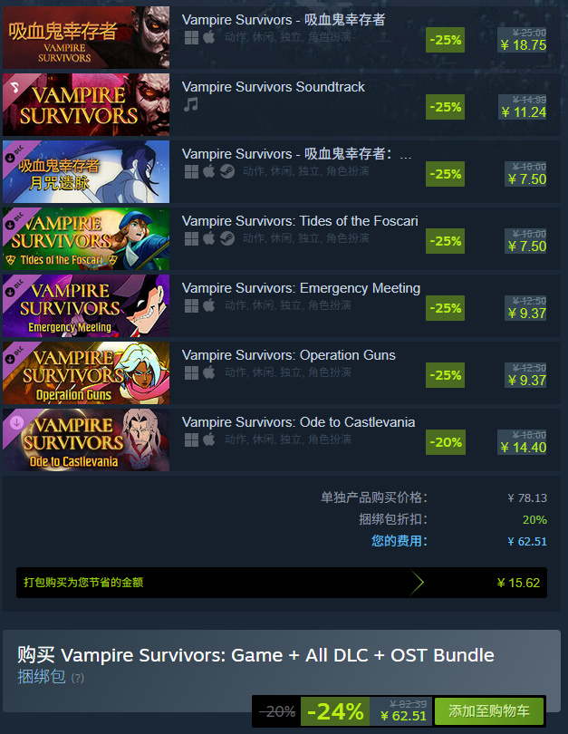 Vampire Survivors: Game + All DLC + OST Bundle