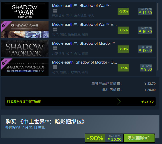 《中土世界™:暗影捆綁包》