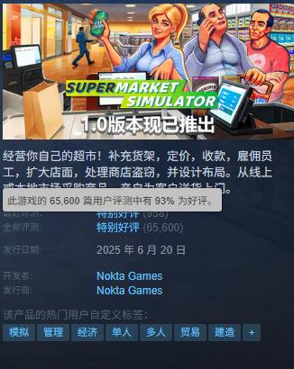 正巧,《超市模擬器》剛剛發佈了1.0正式版