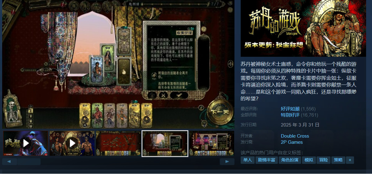 一个作者独立做的游戏,一个人这个完成度真的非常厉害。列在这里,鼓励一下,推理过程十分有趣的古风悬疑探索游戏。