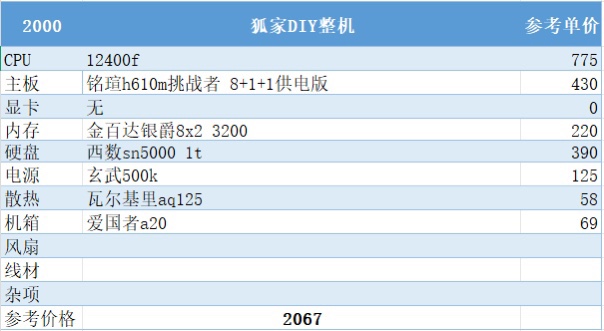 这次我在2000元价位准备了两套不同配置,以满足英特尔信仰用户的需求