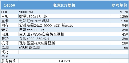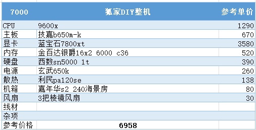 到了这个价位可以毫不犹豫的选择目前最主流的aun卡组合了,这个价位的a卡9070竞争力还是略显不足