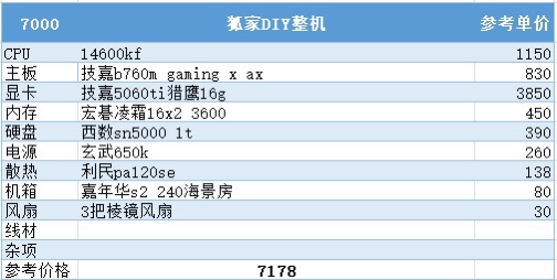 下面这套就是纯粹的性能了,b570在这个价位可以说无敌手,1080p轻松拿捏多数游戏。