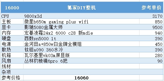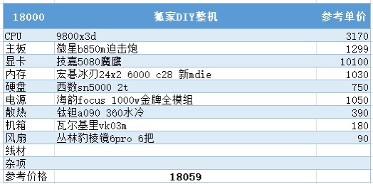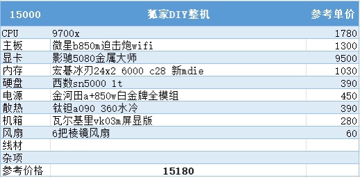 终于,到了这个价位可以上到尊贵的5080了,其实如果选择映众之类的丐卡在14000价位也不是不能配,只是感觉如果其他配件丐了配不上5080