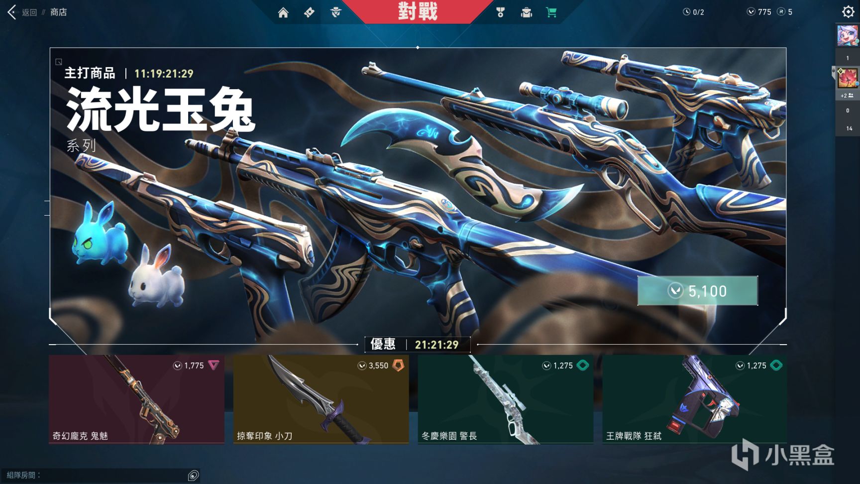最後聊聊夜市。夜市是每個賽季末會獨立於上述兩種購買方式的市場,玩家將會隨機獲得六把武器或刀皮膚的購買權。這裏面每一個皮膚都會有一定的購買折扣,最低應該是不會低於5折。值得注意的是,夜市裏的槍不會刷超過1775VP的,刀不會刷超過3550VP的,所以如果你喜歡的武器超出了這個價格範圍而且已經不再售賣套裝了,那很可惜,只能夠等待某一天每日商店會刷出它,除此之外沒有任何購買的途徑。
