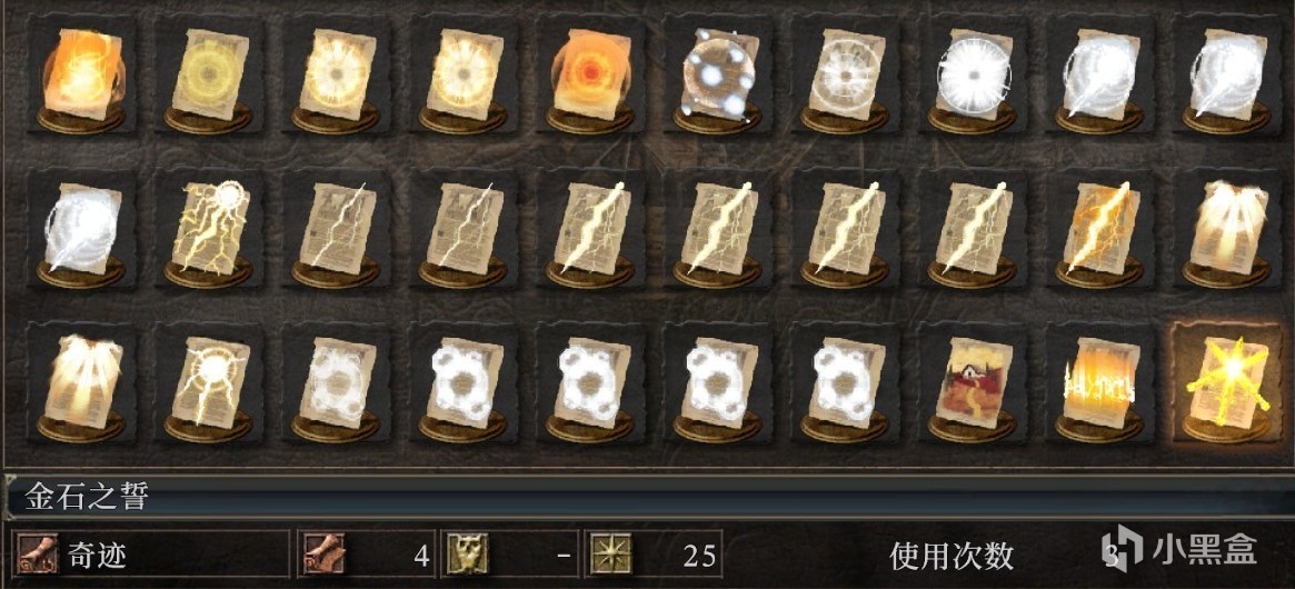 金石之誓:占格数4、信仰25、使用次数3
