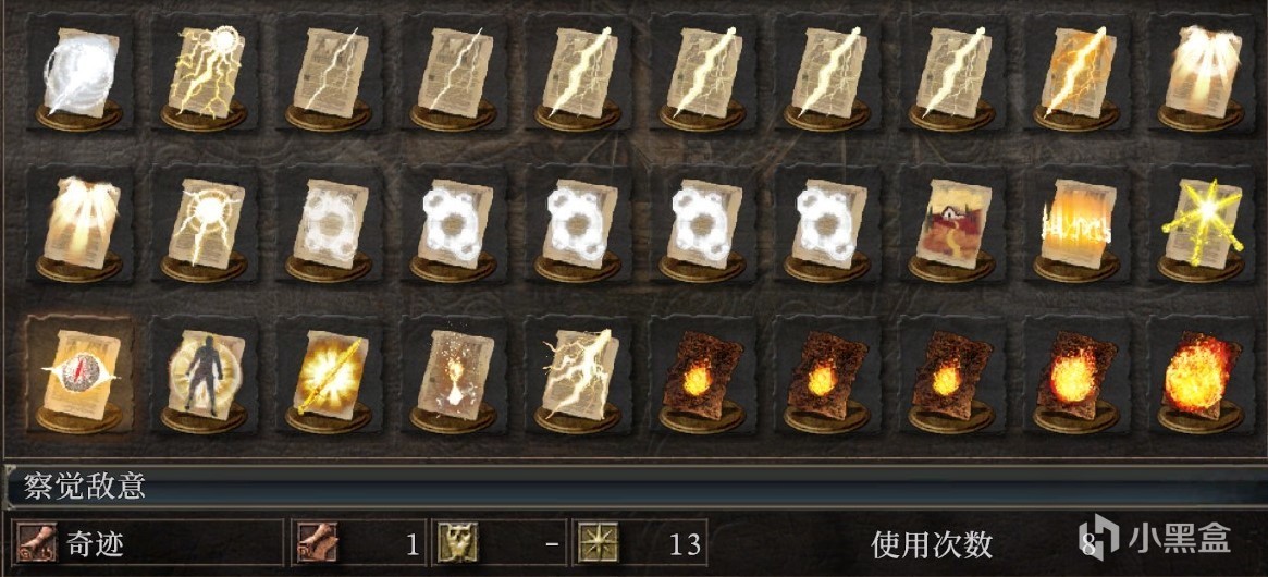 察觉敌意:占格数1、信仰13、使用次数8