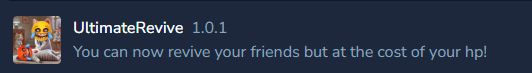 還在爲隊友莫名其妙的死亡而感到苦惱嗎?無需等待收貨,只需要你對準隊友屍體按H即可花費20生命值使其當場復活(復活只有20HP,可配置模組數值)。