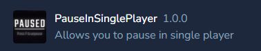 還在擔心一個人遊玩時無法安心打斷嗎?現在你可以在單人遊玩時隨時暫停不用擔心怪物侵襲了,默認暫停按鈕爲F6,當然你也可以在模組配置裏面修改暫停按鈕,創建出獨屬於你的遊戲時空。