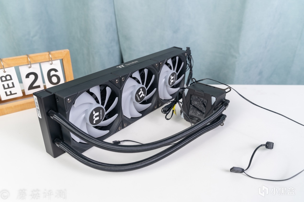 ▼虽然9700X的发热不大,但散热器依然使用了TT的钢影Ultra360一体式水冷,这款水冷的水冷头标配了一块屏幕,可以实时的显示硬件参数,很实用。
