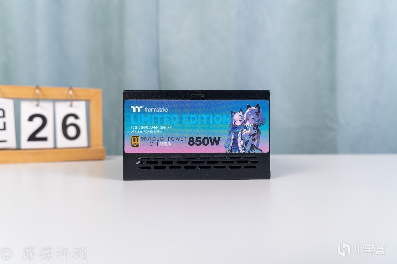 ▼电源侧面的颜值很漂亮,贴纸的配色很好看,左侧是电源的型号。