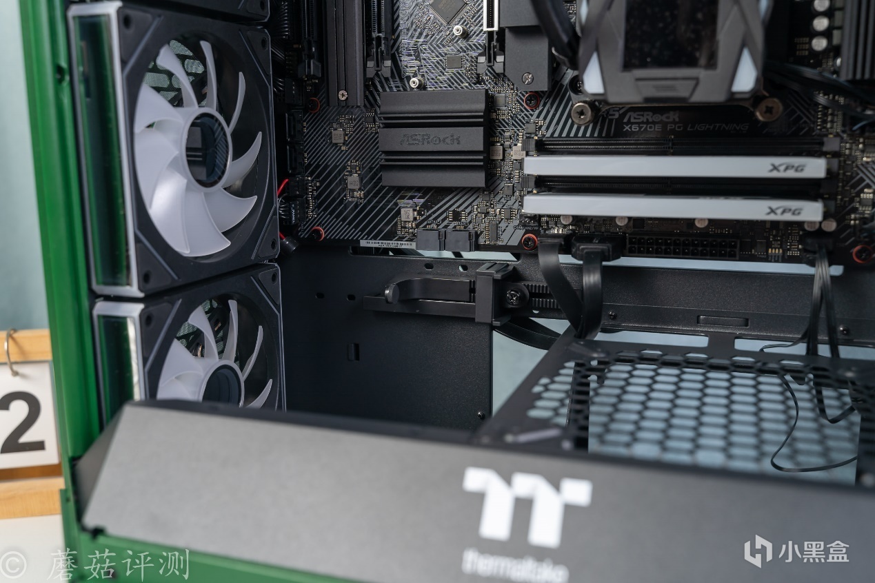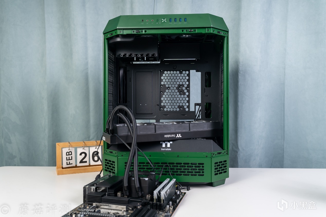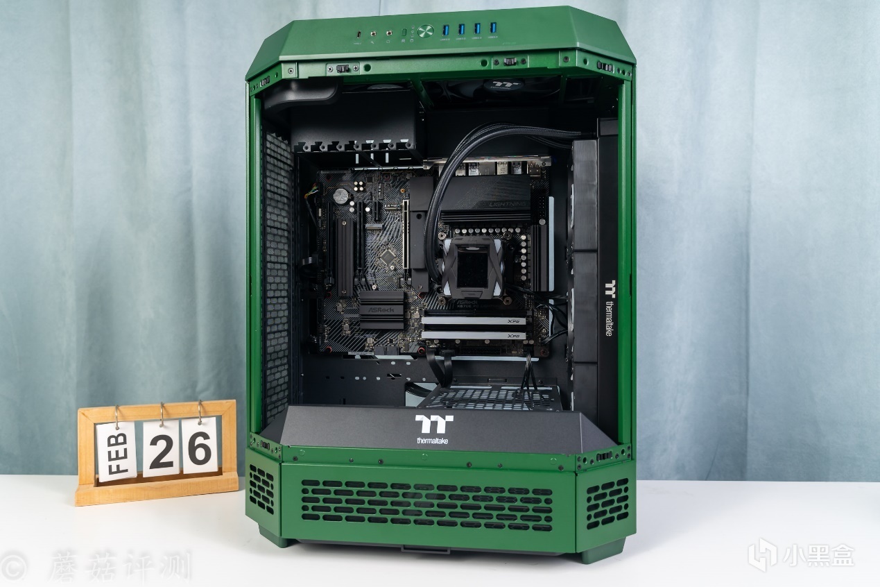 ▼机箱用的是TT的The Tower 600,这款机箱的造型和设计还是非常个性的,主板横置安装,显卡竖直安装,风道是垂直风道。