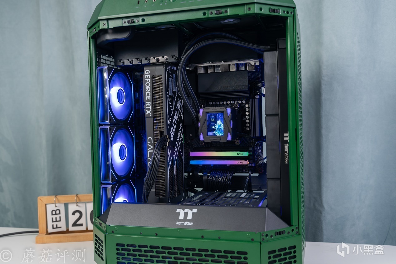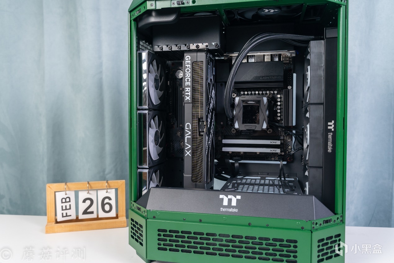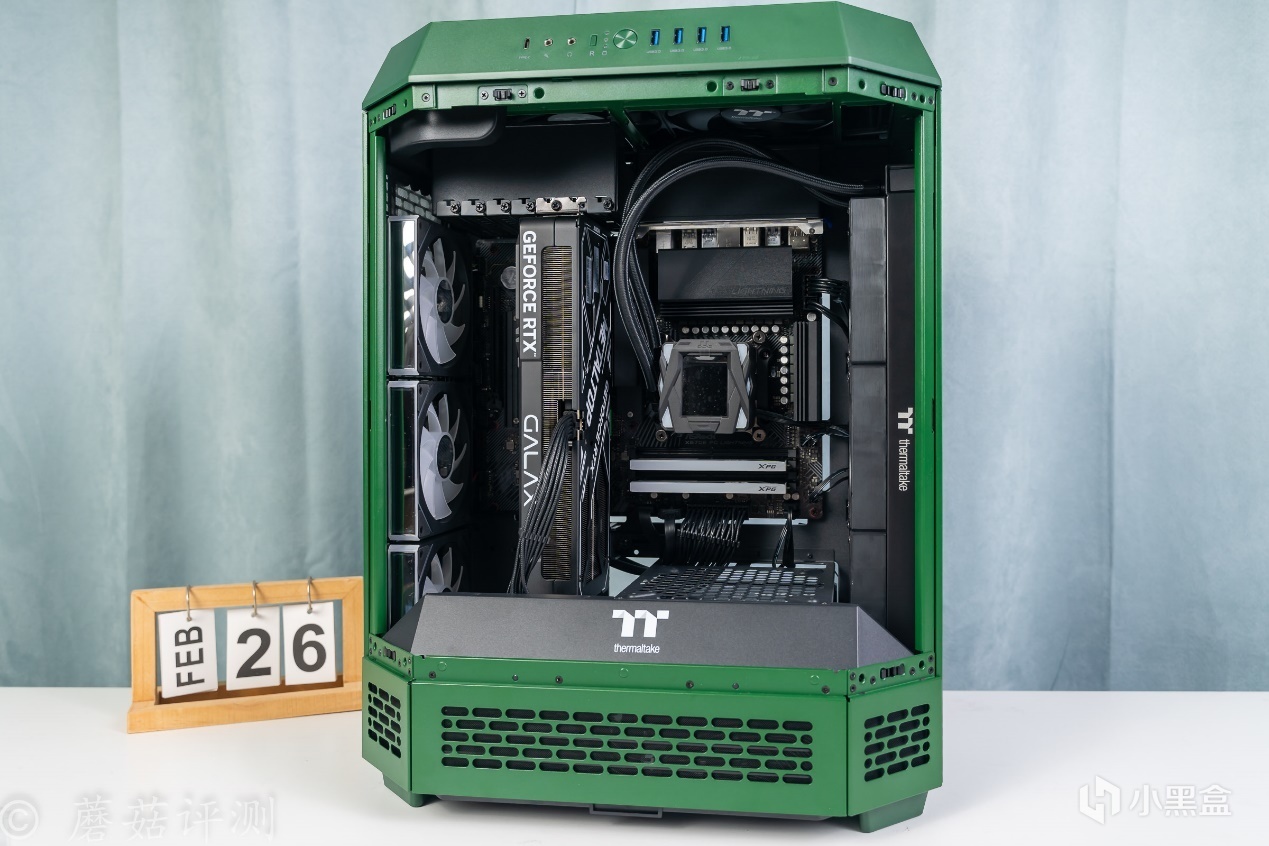 ▼机箱用的是TT的The Tower 600,这款机箱的造型和设计还是非常个性的,主板横置安装,显卡竖直安装,风道是垂直风道。