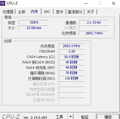 ▼内存的频率在6000MHz,时序30-40-40-76,时序还不错。