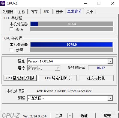 ▼简单跑个CPU-Z的测试,单核得分892.4,多核得分9079.9,单核不错,多核真的有点弱。