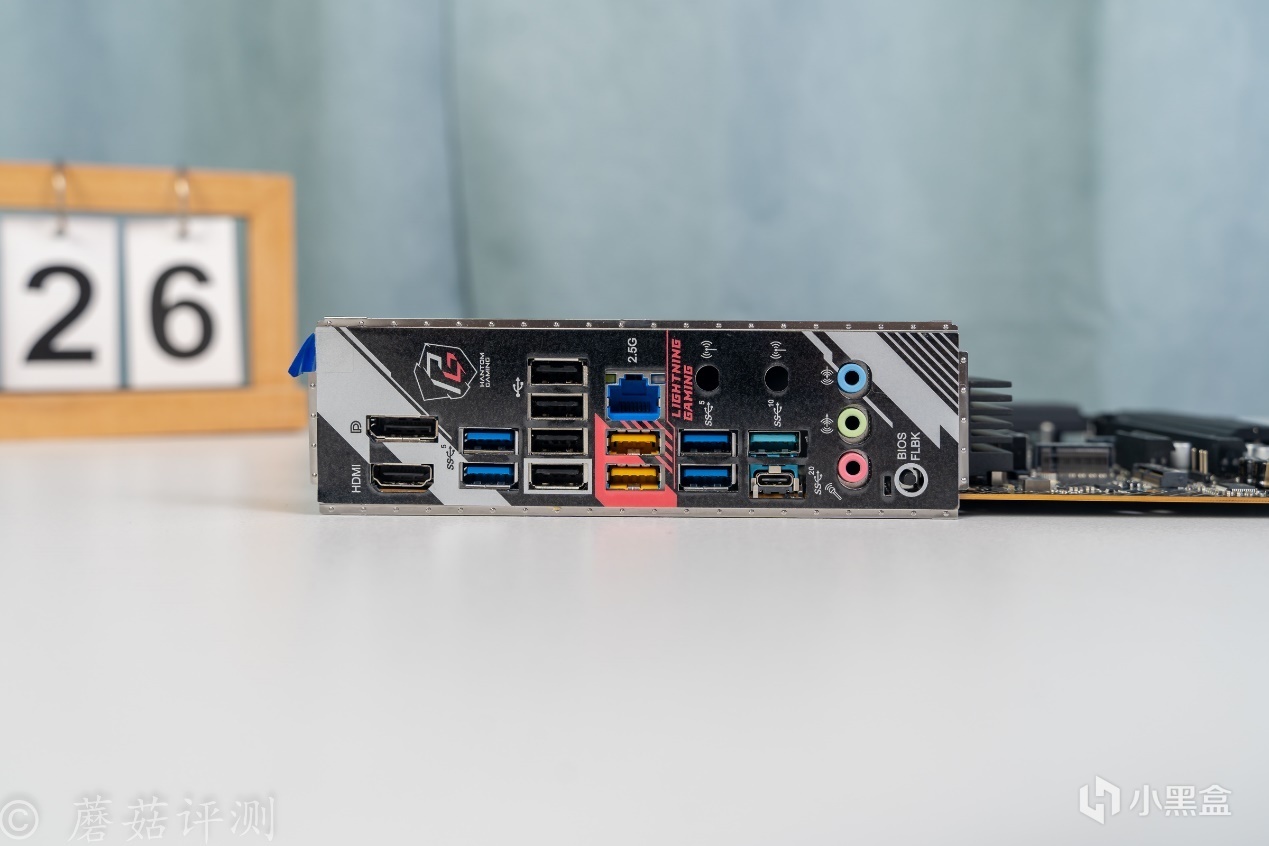 ▼主板后部的IO接口,花花绿绿的,不同带宽的USB接口数量很多,还有专用的USB键鼠接口,以及20Gbps带宽的Type-C接口。