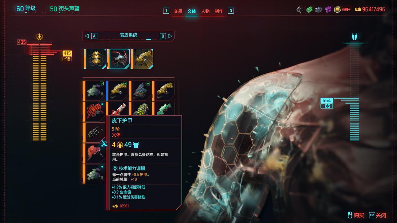 编织肌肉骨骼:1500货币(没有单位),生物组件,用显微人造纤维对肌肉和骨骼进行编织,提高物理强度和抗伤能力。