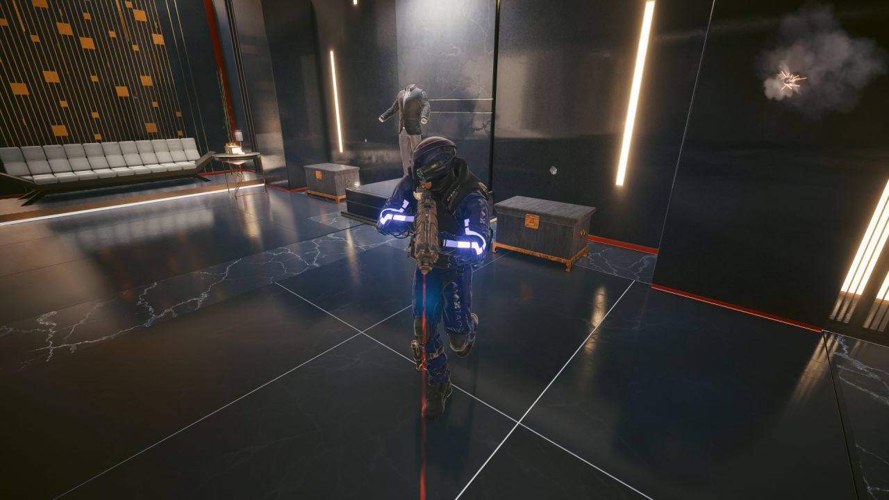 瞄准镜:可以显示特定物体的距离,移速,方位和尺寸,还可以提供不同的分划线进行校枪。接入智能武器后,“瞄准镜”会与枪械上的目标传感器同步,当目标捕获后便会闪过“准备就绪”字样。