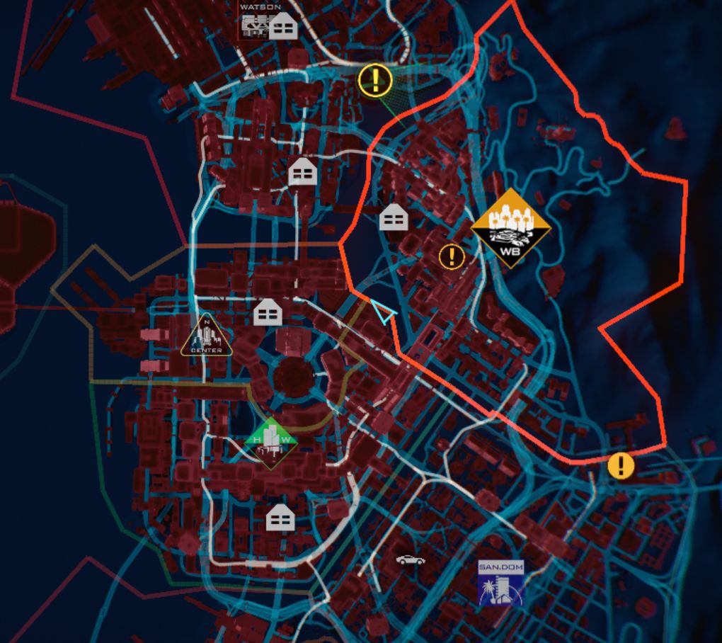注:以上提到的市刑事司法综合大楼和湖畔公园均位于2020年的夜之城中心,以夜之城2020年地图为参考可能位于2077地图中威斯特布鲁克日本街、市政中心公司广场和海伍德丽景区交界处,也可能就在日本街。