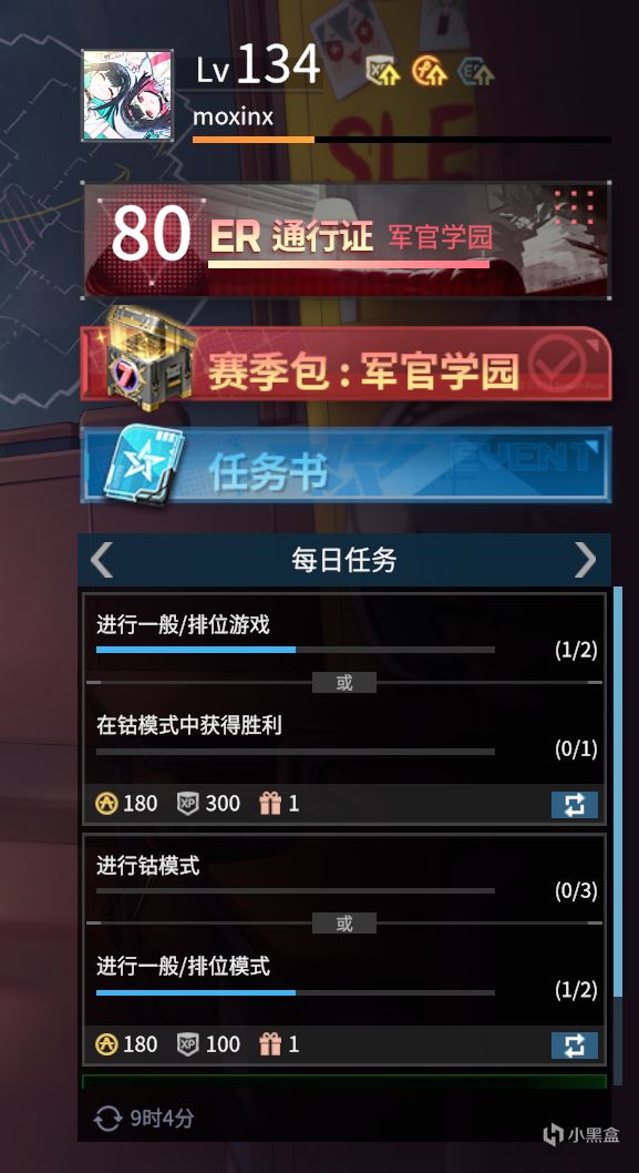继续大厅,接下来是每日任务,每天三个,都很简单,一般一两把就能打完,刷新条件是你已经完成了该每日,不要有着哎今天的任务感觉有点麻烦不想打等明天刷新算了的想法
