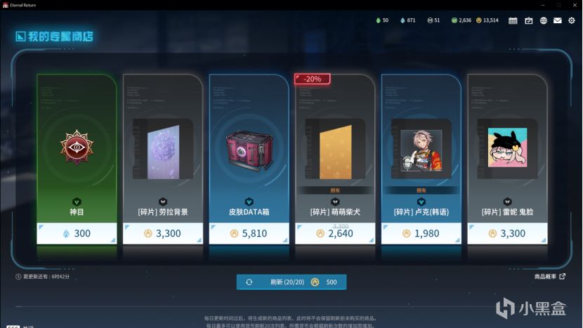 在这里可以用a coin买到绝大部分直售和非直售的往期商品,前提是你的运气足够好而且备有大量的a coin,金币卖的皮肤可不便宜,有的时候这里会刷新一种开代币的箱子和一个叫秘密data箱的东西,没钱就别碰,很容易亏完
