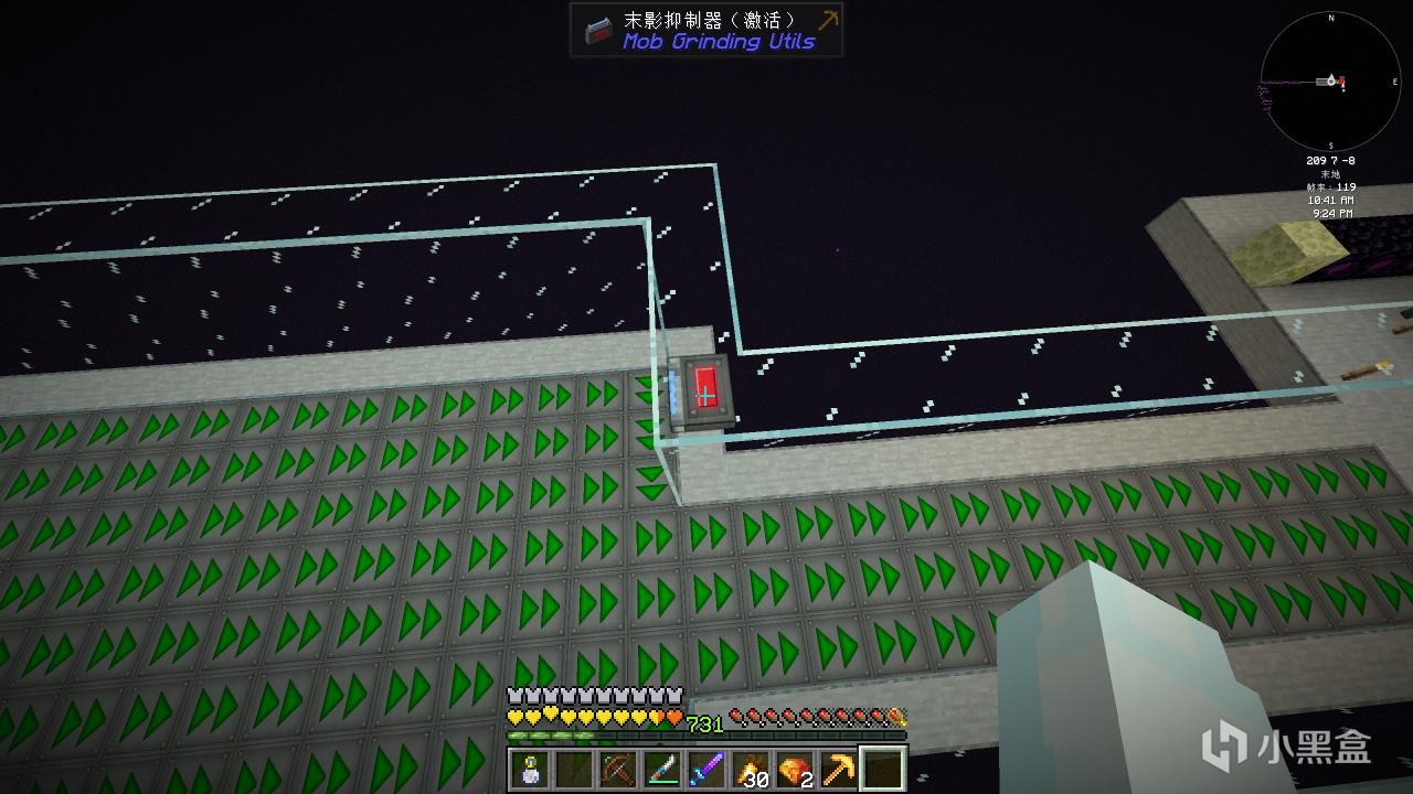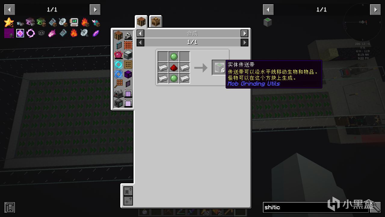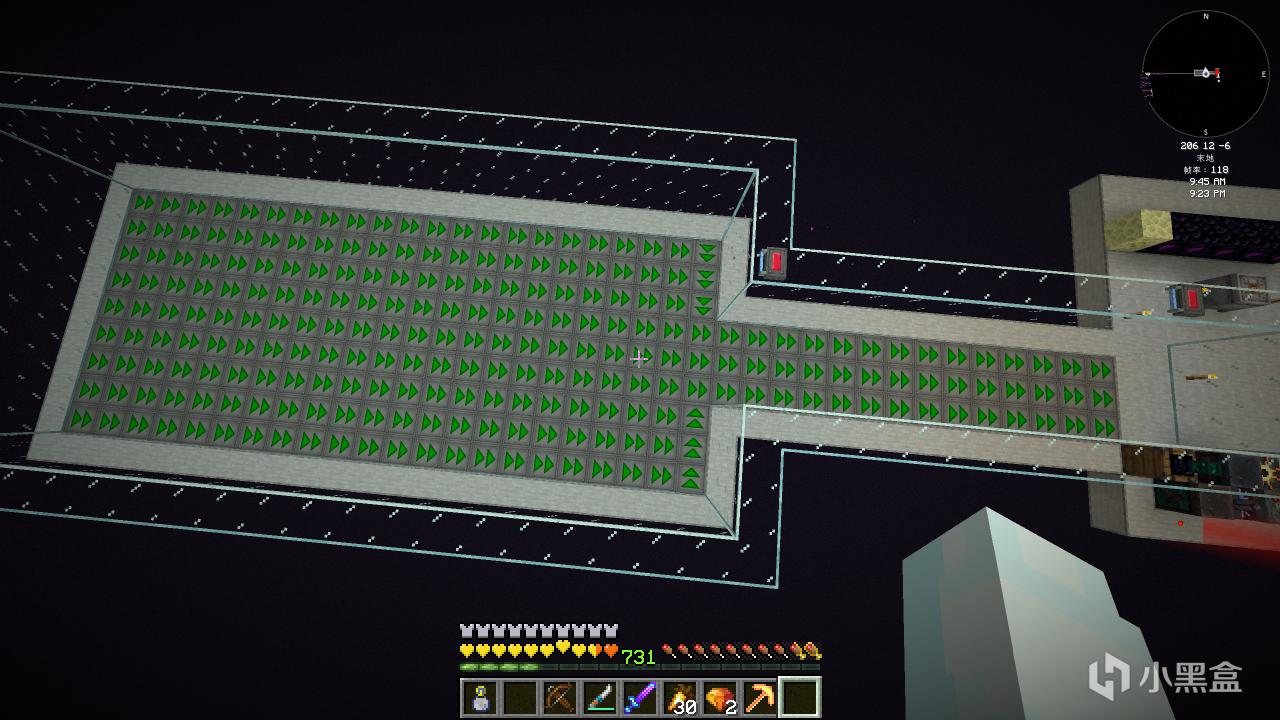 准备大量实体传送带,摆成如图所示的形状。具体长宽不用太纠结,建的越长刷怪越大,我这个长度刷怪已经很夸张了,手砍完全砍不过来。