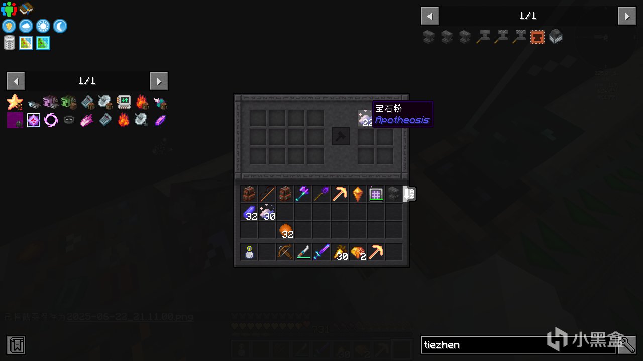 宝石弄好之后,打开锻造台,把斧子和宝石合成即可镶嵌。