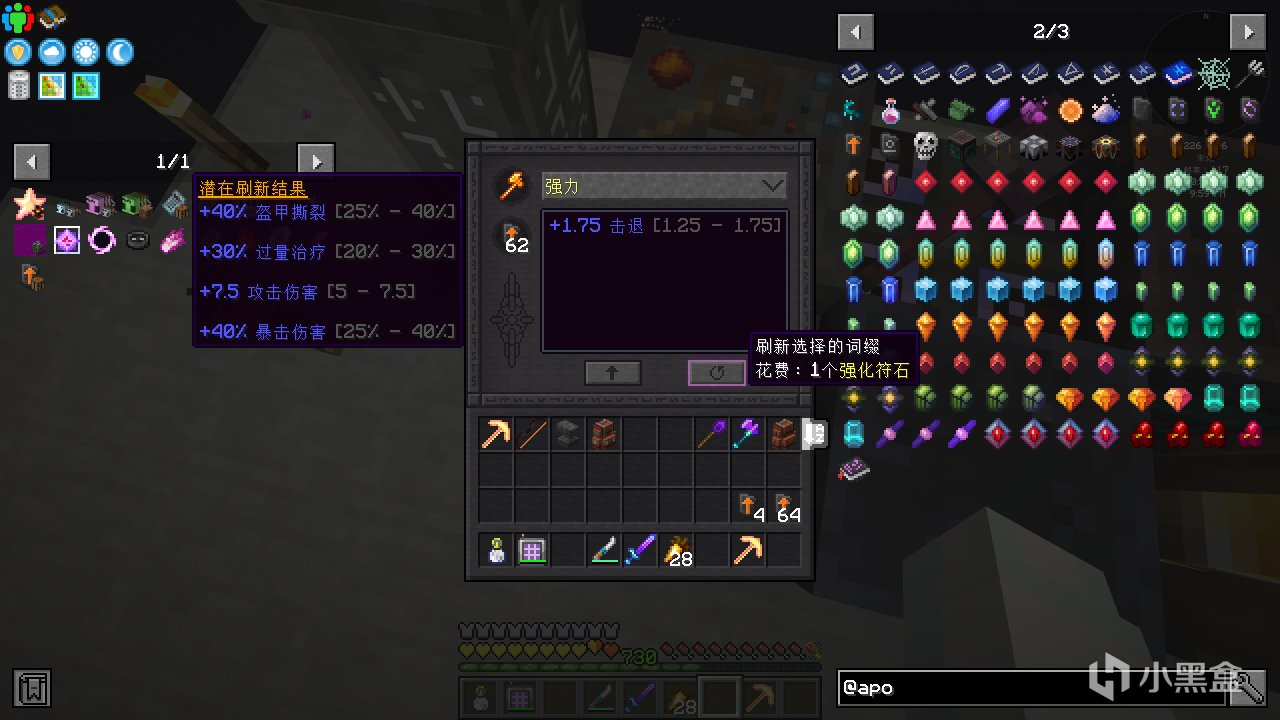 击退这个属性,我不满意,可以点右边的刷新。左侧会显示可能出现的刷新词条。
