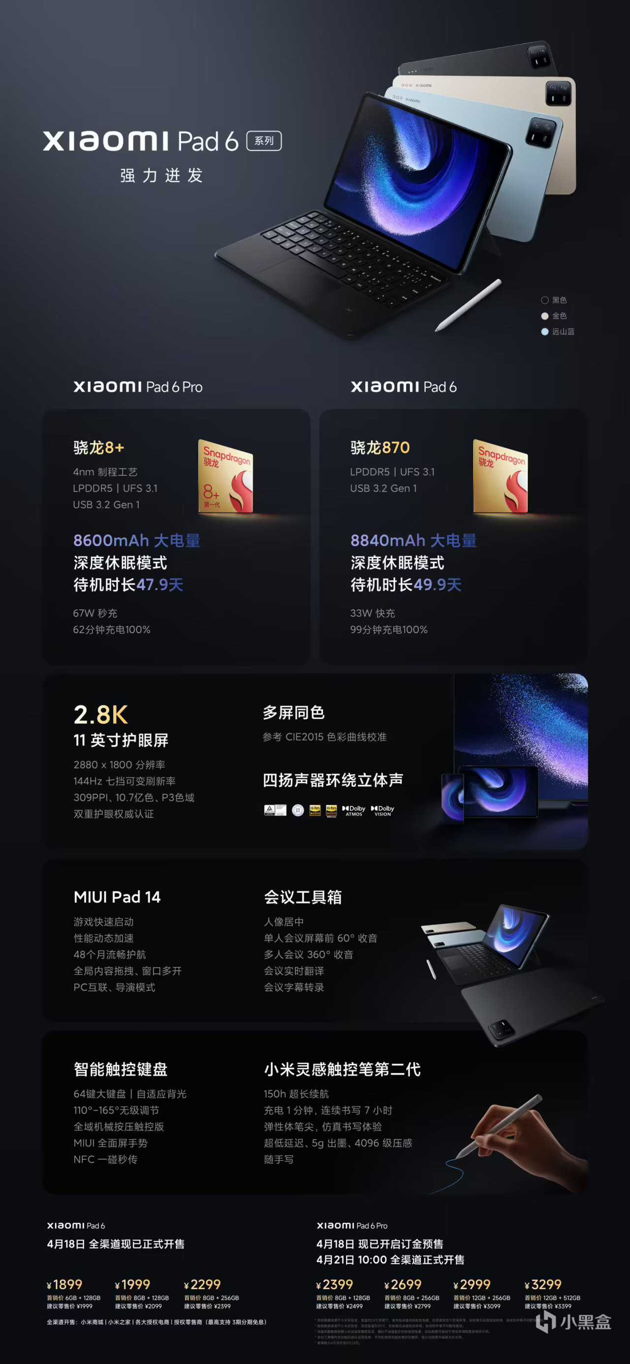 2023年4月小米平板产品线更新了小米平板6pro,当时8+256发售价高达2699元,而两年多时间过去,这款设备目前价格也是降到了一个非常具有性价比的数字,国补后1444