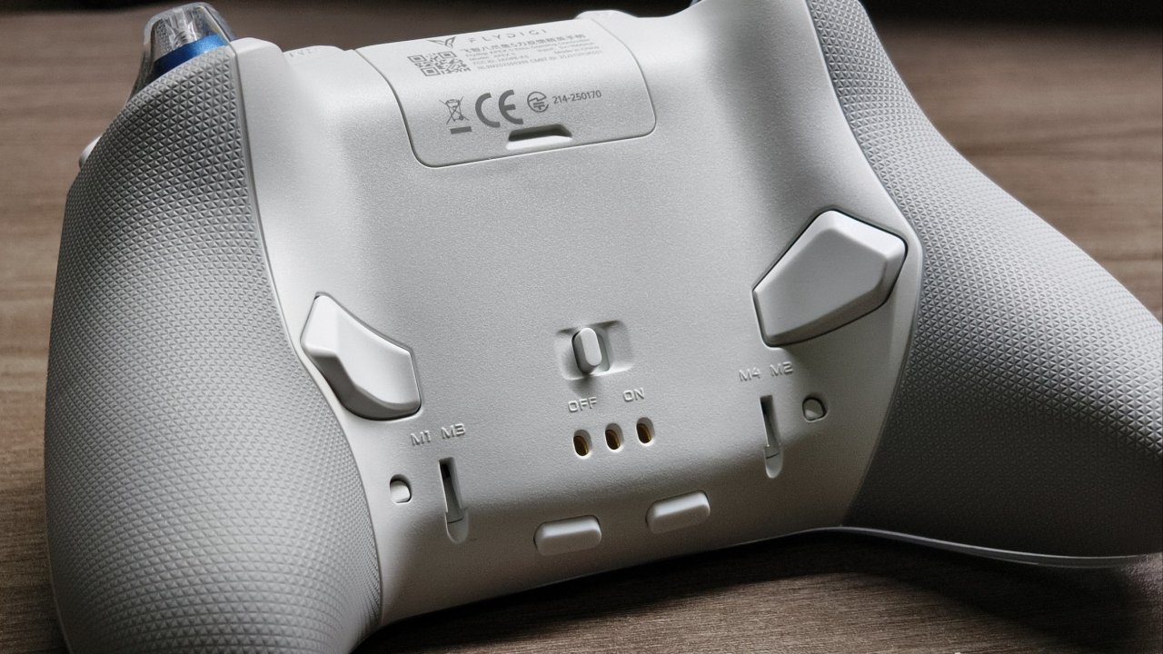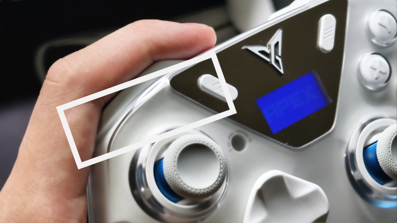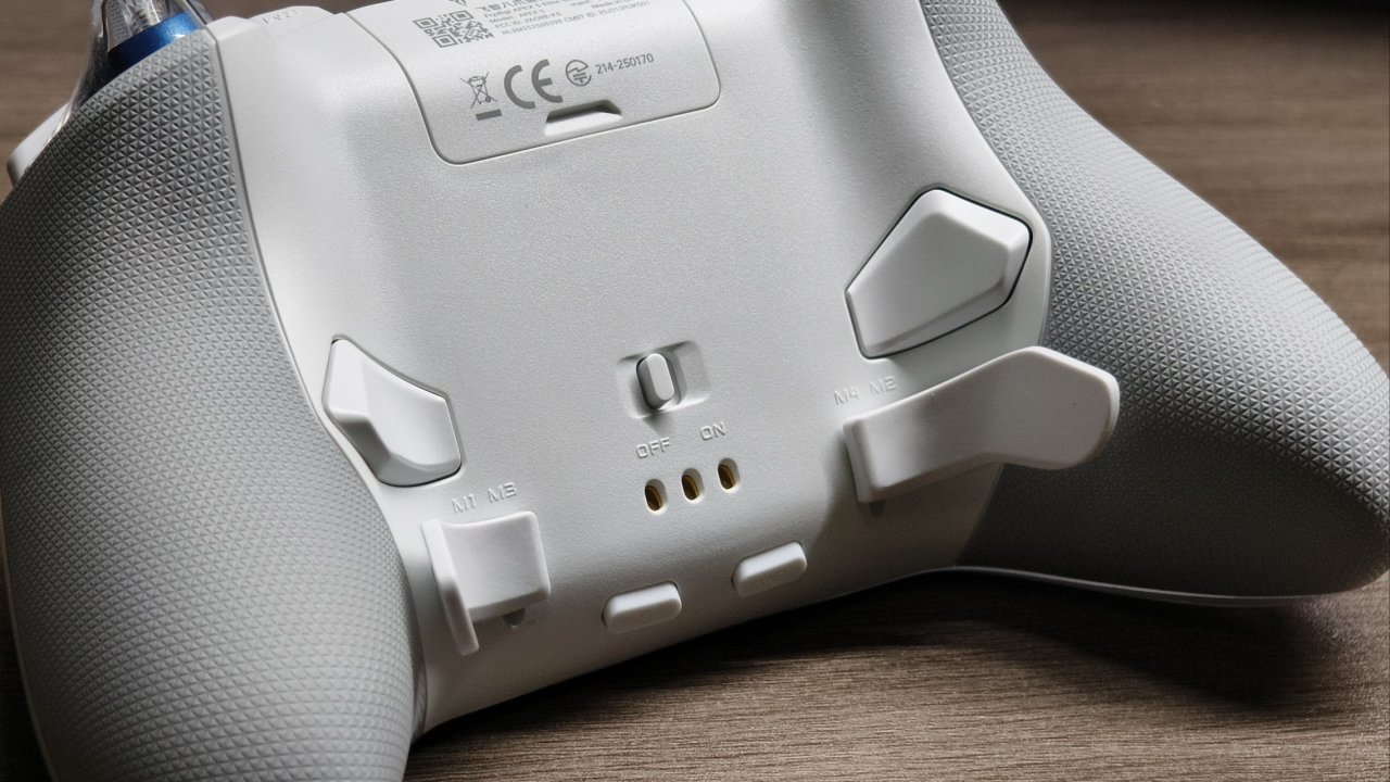 你可能看到圖片會覺得,哎?之前84還有4個背鍵,現在咋還只有2個背鍵了?其實這回的85更換成了可拆卸式的背鍵,裝上之後就是上下各兩個背鍵。然後可拆卸的背鍵你可以看到有點像是XBOX精英2代的感覺,是一個長條的樣式
