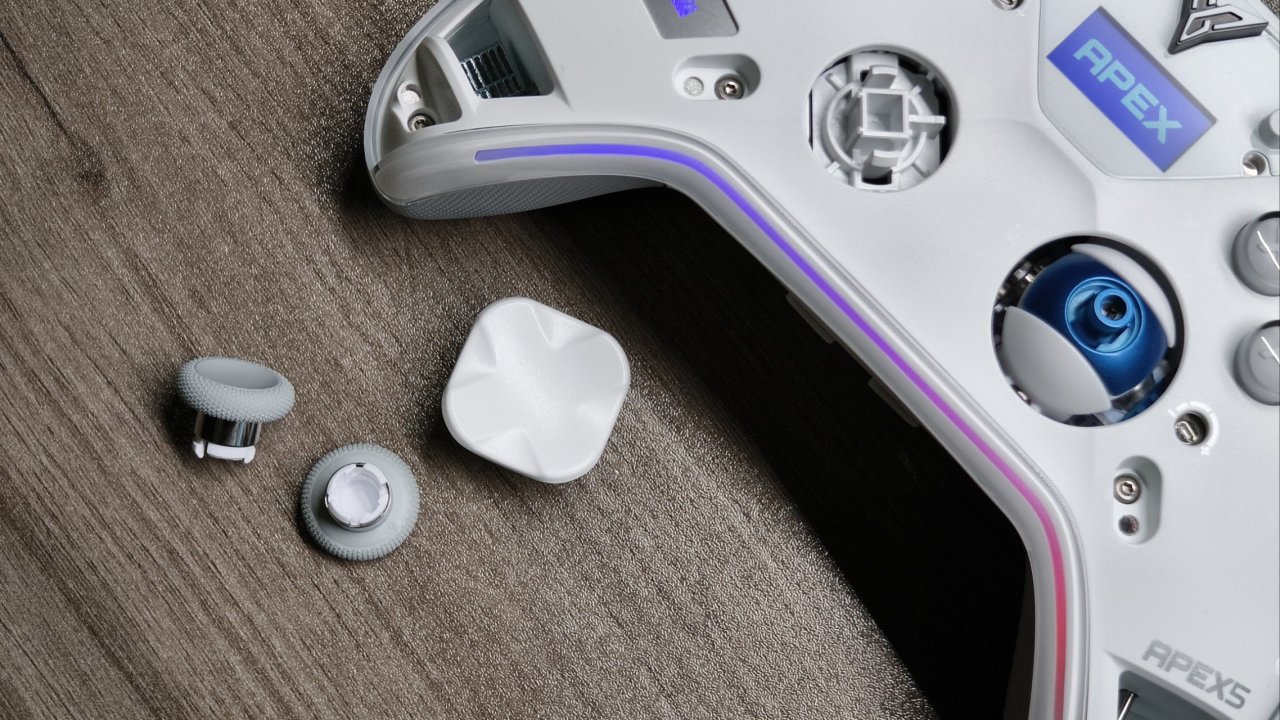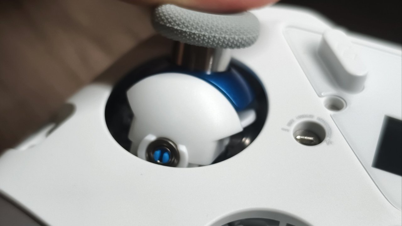 十字鍵方面內部是觸發開關,壽命同樣達到了數百萬次,和ABXY鍵一樣,上面都有一層硅膠墊。與前代一樣,配置給的都挺足,內部還有萬向十字節,轉動絲滑靈動。可能與前代唯一的不同就是鍵帽方面變了,雖然說依舊是八向十字鍵,但是變成內凹的了,打格鬥遊戲更好搓招,定位更加準確了一些