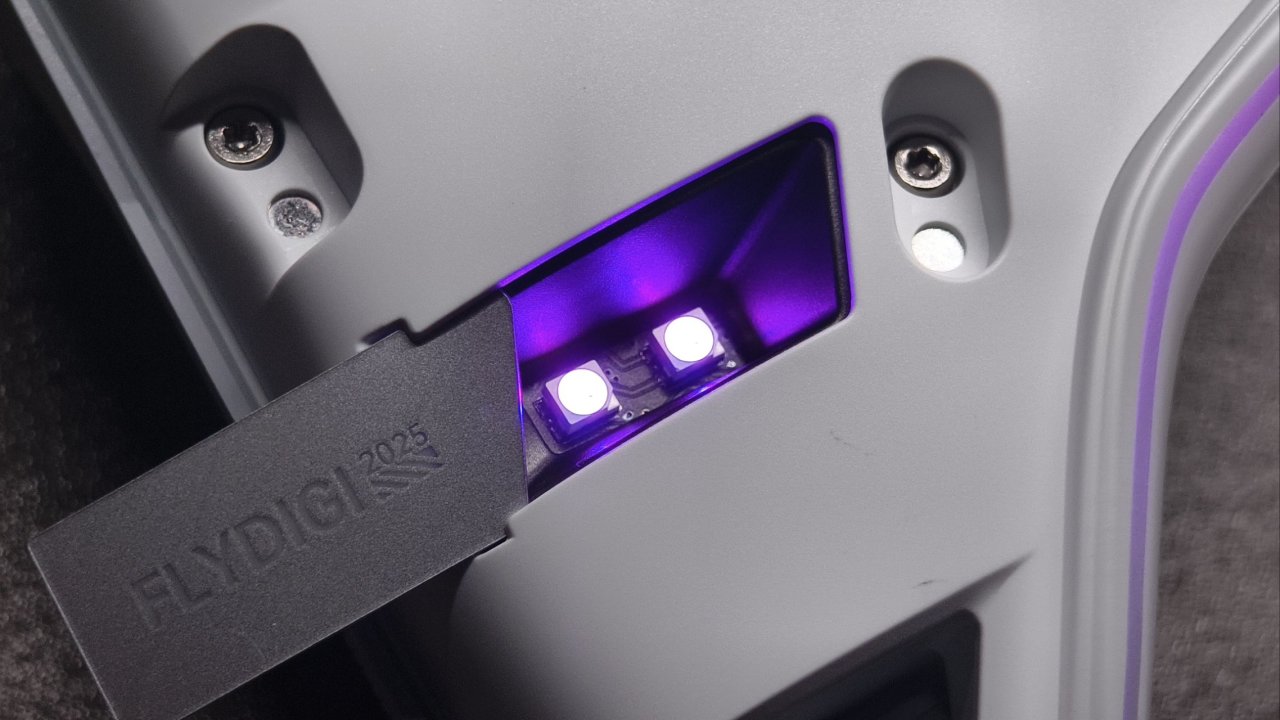 細節方面個人感覺比前代好了一些,就比如手柄左下方這個會發光的亮片,前代好像是不能抽出來的,現在可以抽出來了,抽出來後你會發現下方有幾個LED燈