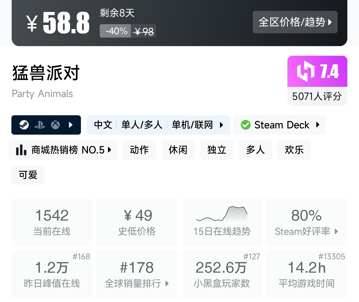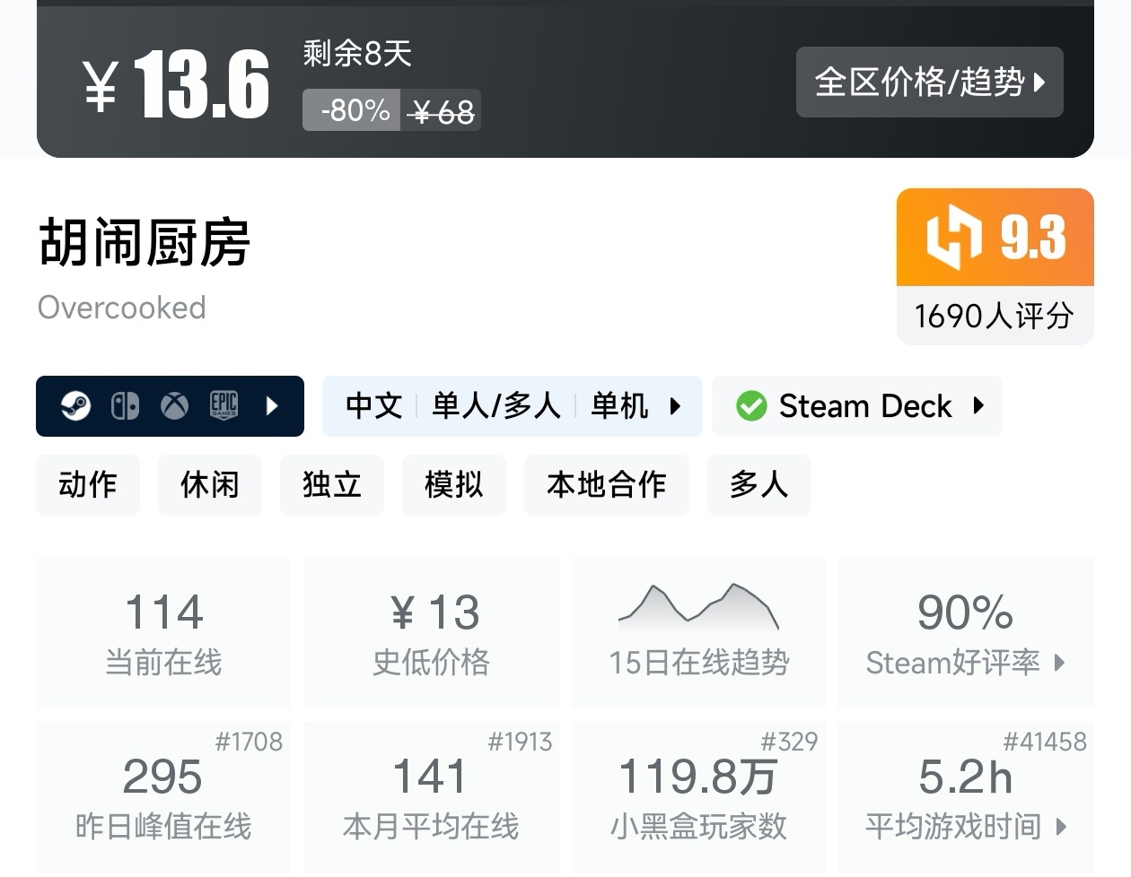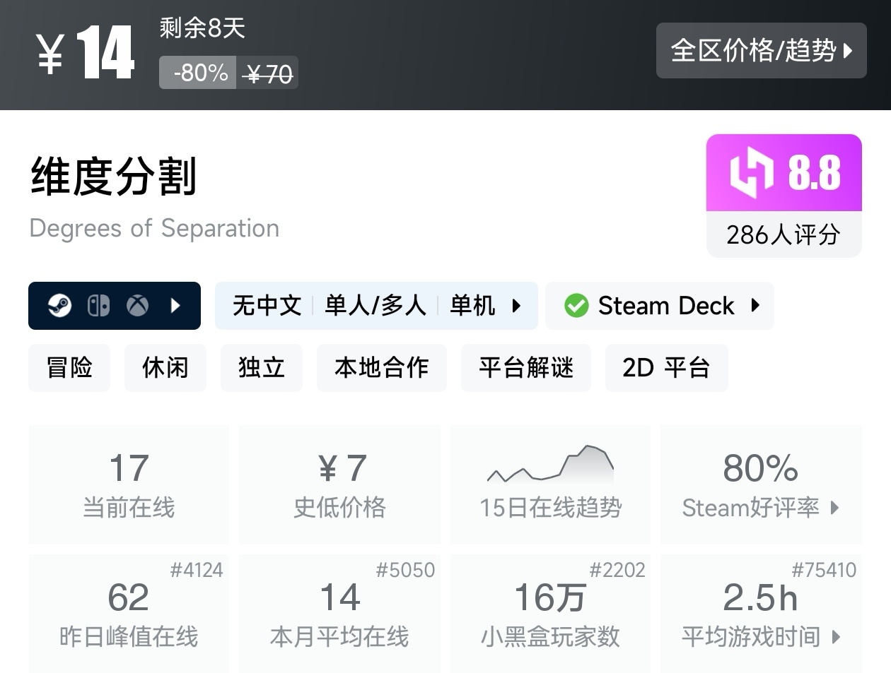 大家好,继上次的恐怖游戏后,这次我们的夏促不同类型的游戏折扣汇总就来到了双人联机的游戏了,同样,我在这次汇总里,已经贴心地为各位排除了一些价格有点贵与恐怖类型的游戏了,所以说老少皆宜,很适合与朋友/兄弟/姐妹/对象/孩子一起玩,希望我的汇总,能够帮助到各位盒友挑选心仪的游戏。