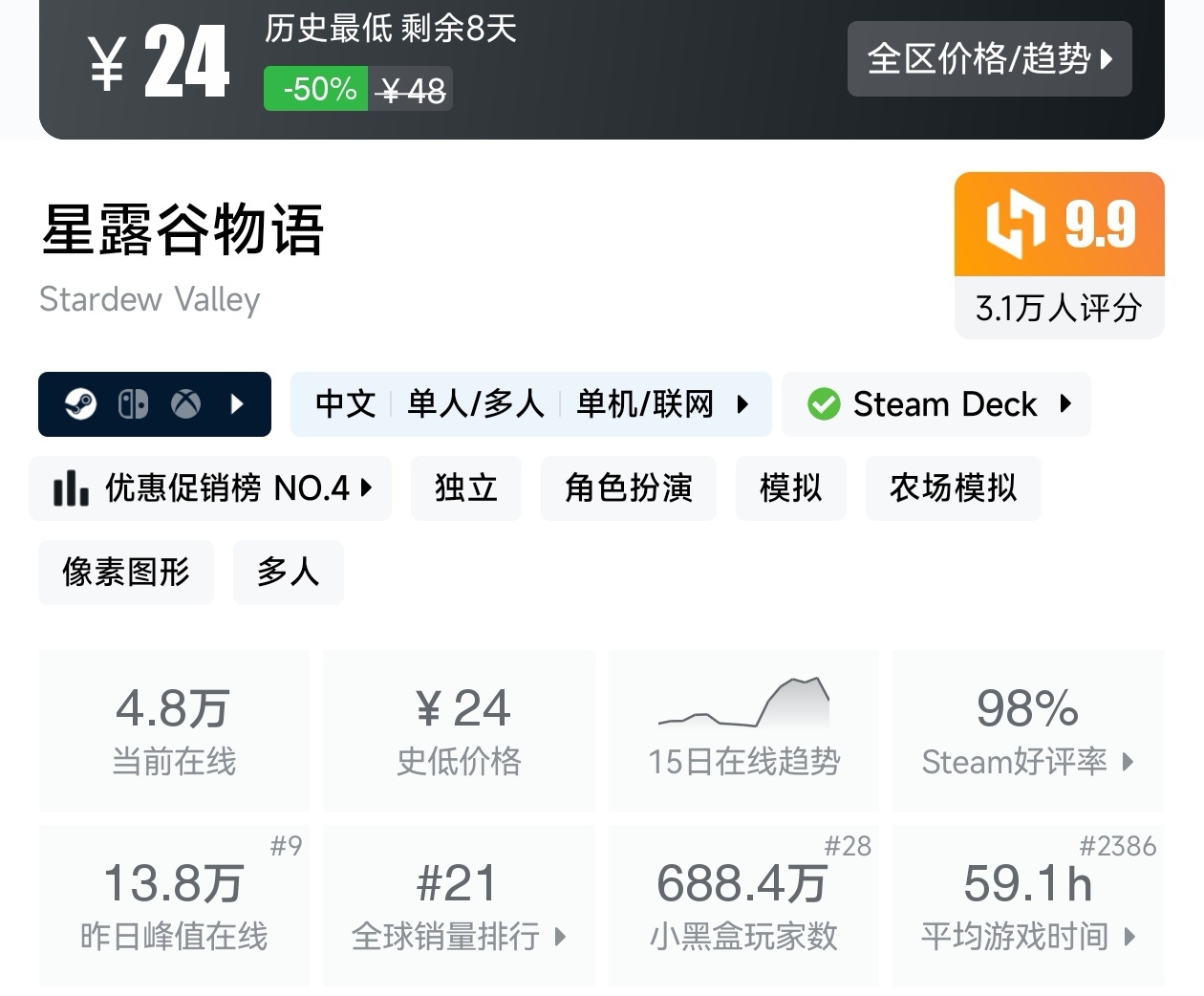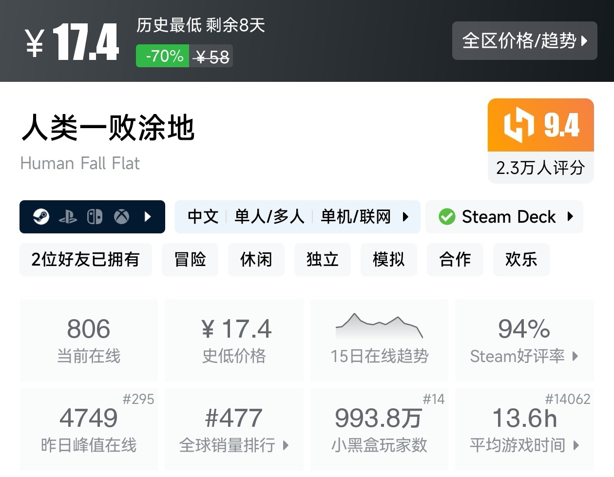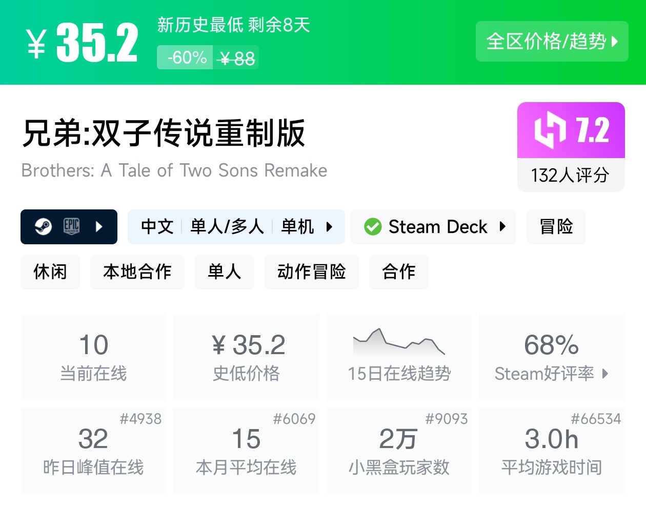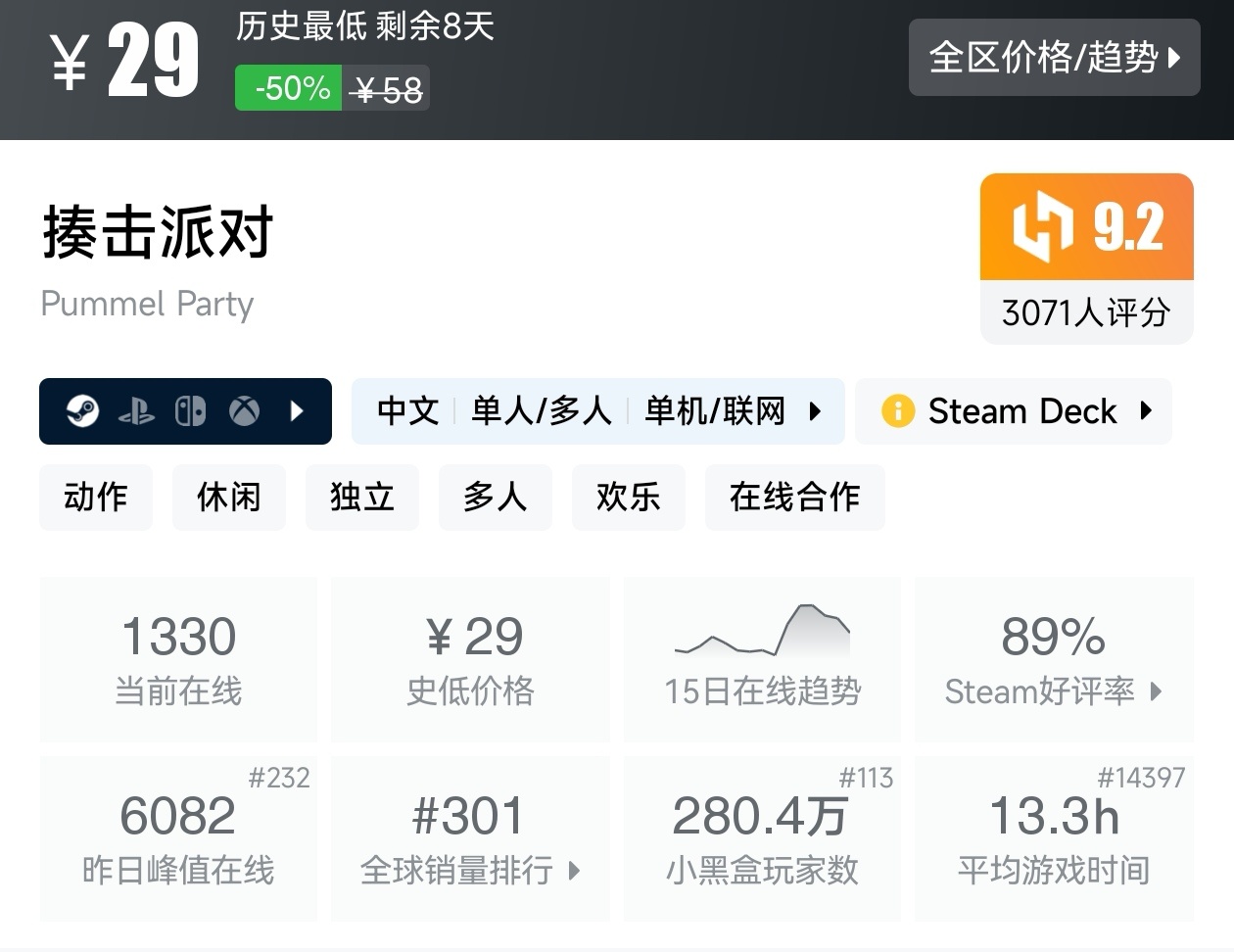 大家好,继上次的恐怖游戏后,这次我们的夏促不同类型的游戏折扣汇总就来到了双人联机的游戏了,同样,我在这次汇总里,已经贴心地为各位排除了一些价格有点贵与恐怖类型的游戏了,所以说老少皆宜,很适合与朋友/兄弟/姐妹/对象/孩子一起玩,希望我的汇总,能够帮助到各位盒友挑选心仪的游戏。
