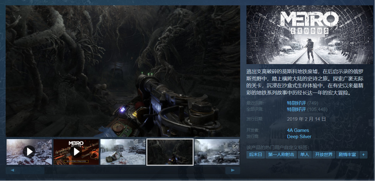 7.《地鐵:離鄉 黃金版》(非史低但好價30R)(史低14.8R)