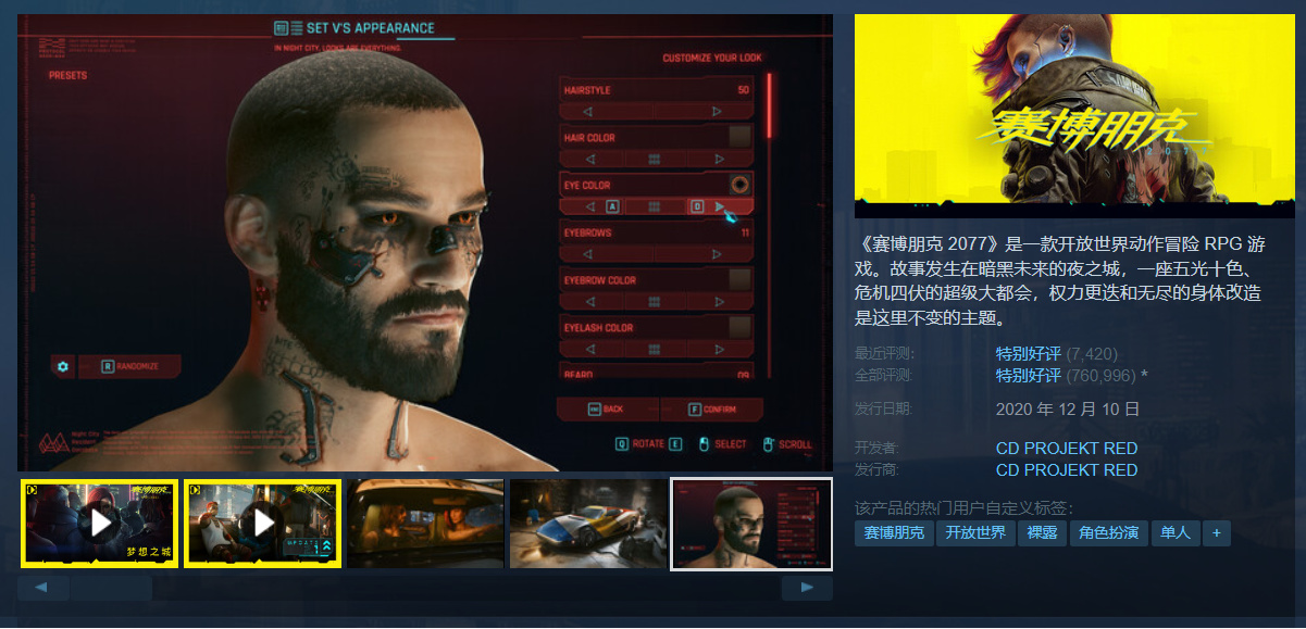 夜之城活閻王,義體容量第一人,大名鼎鼎的V!現在入手絕對不虧的開放世界動作冒險 RPG 遊戲,也是我心中最好的賽博朋克遊戲,滿足了我對於賽博朋克的一切幻想。