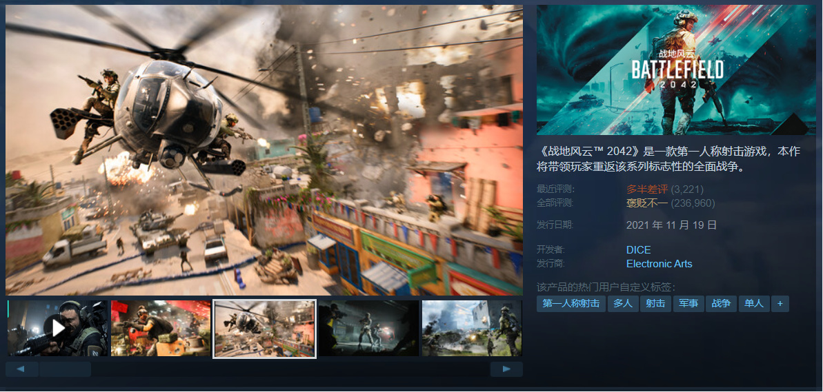 1.《戰地2042》(新史低,0.5折,12.4R)