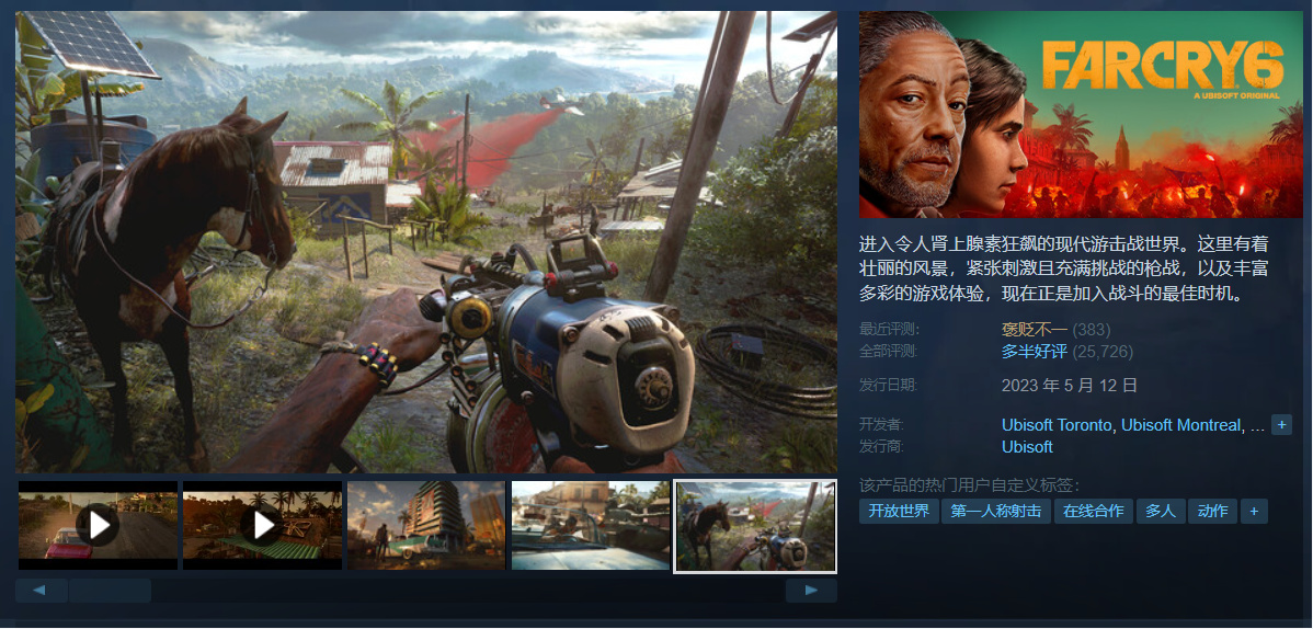 8.《孤島驚魂6》(好玩但育碧遊戲可以觀望觀望,老打折)(史低59.8R)