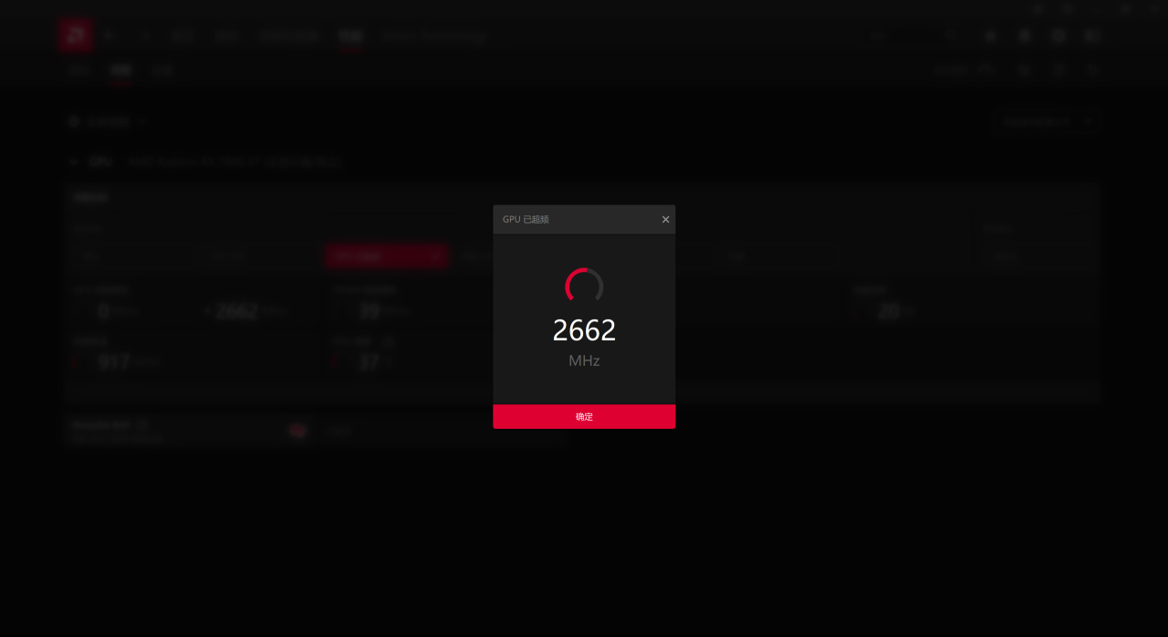 抄作业:以楼主7800XT为例,超频GPU频率提示为 2662Mhz(图四),最大频率设置为2450Mhz(即超频GPU-200),最小频率设置为 2200Mhz(即最大频率-250Mhz),这样在运行大型游戏负载时,不会出现过场动画后突然帧率骤变而导致体验差。