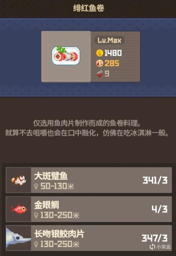 绯红鱼卷在员工比利15级时解锁,材料全是鱼,都可以养殖,而且份数多,价格也很高。