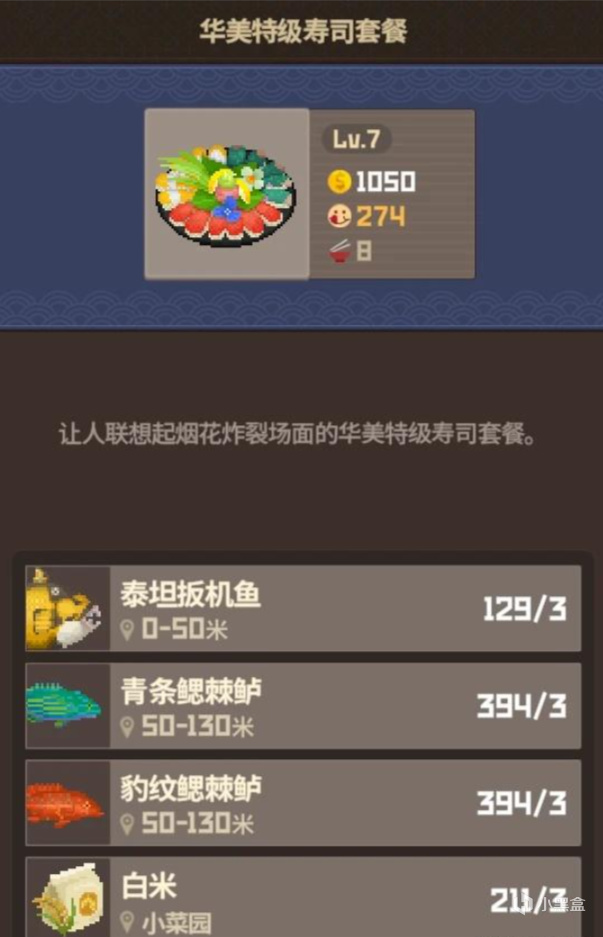 黄瓜优化之后,我们最佳的选择也就基本敲定了,做华美特级寿司套餐,也就是泔水套餐,三种鱼很好获得,也可以养殖。
