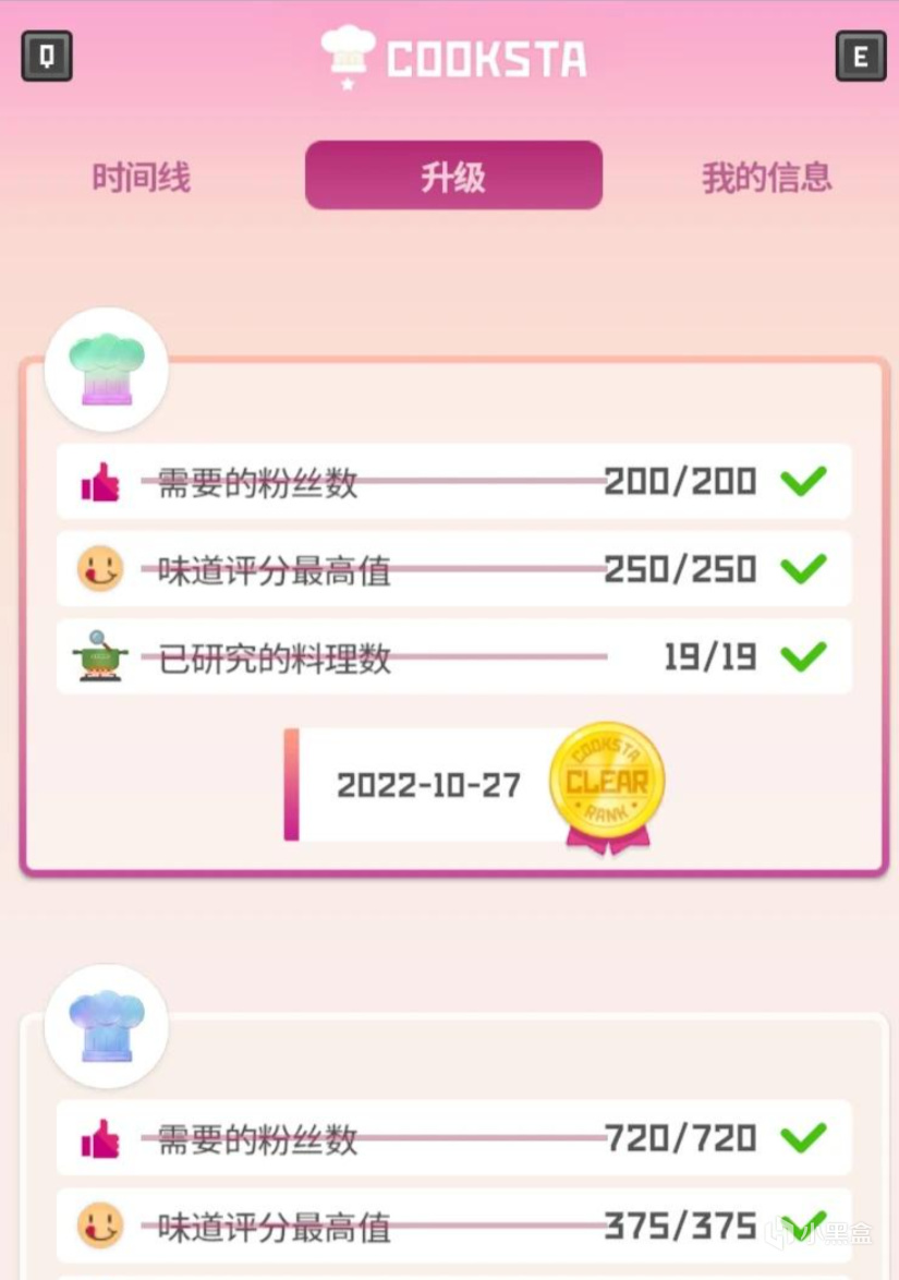 其他都很好理解,这里单独说说美味度和份数,客人会优先选择美味度更高的料理,因为后面一晚上也主要是做一种料理这一点倒不是太影响,唯一需要关注的就是店铺在升级钻石级的时候需要375。