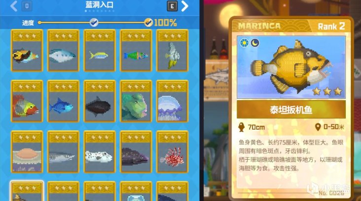 前期我们主要活动在0-50米这个深度,而且氧气容量,背包这些都很垃圾,我推荐抓鹦嘴鱼和泰坦扳机鱼。