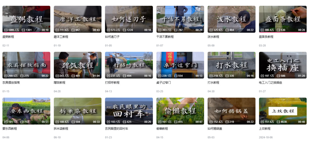 再往深層的內容上說。儘管視頻都很簡單,但有價值的內容,也讓它看上去更像是當代版的《齊民要術》。從如何鋤地、壘墳頭,到殺雞宰魚,迎來送往,和鄰居處好關係,視頻都能娓娓道來,讓你能夠在短時間內學到一門技藝。