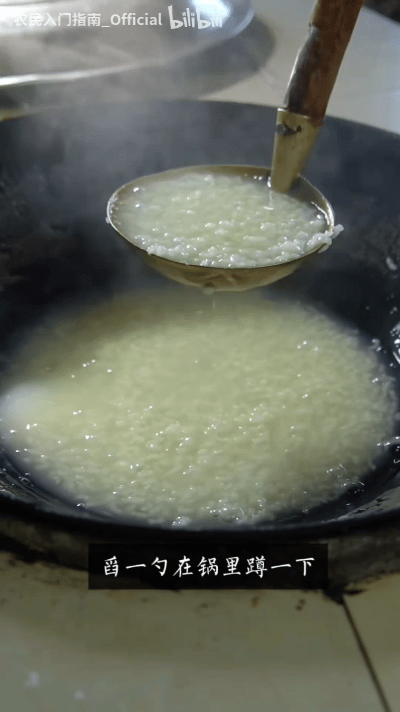 “面前一鍋熱粥,拿勺子盛一勺,蹲一下,瀝淨勺底的粥,然後盛到碗裏”